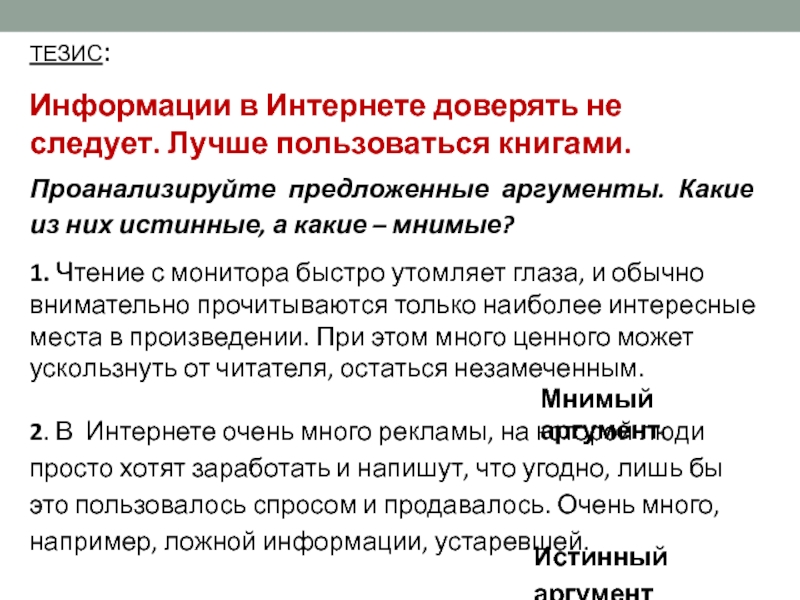 предложенные аргументы. Какие из них истинные, а какие – мнимые?