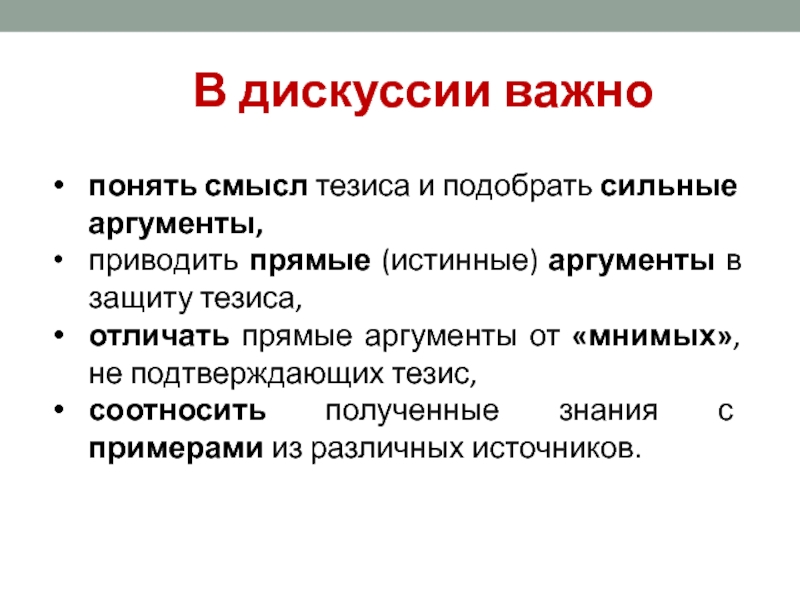 отличать прямые аргументы от «мнимых», не подтверждающих