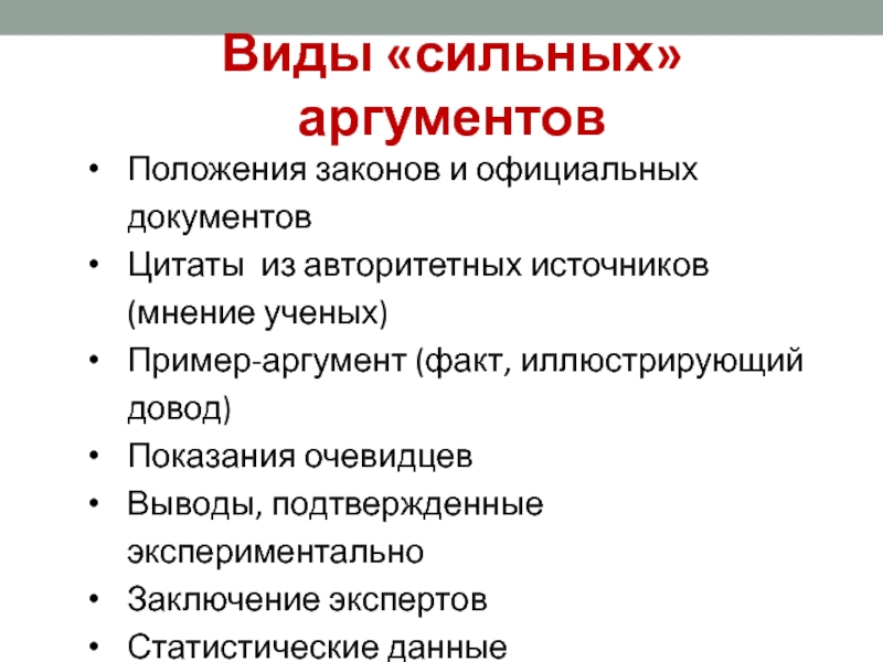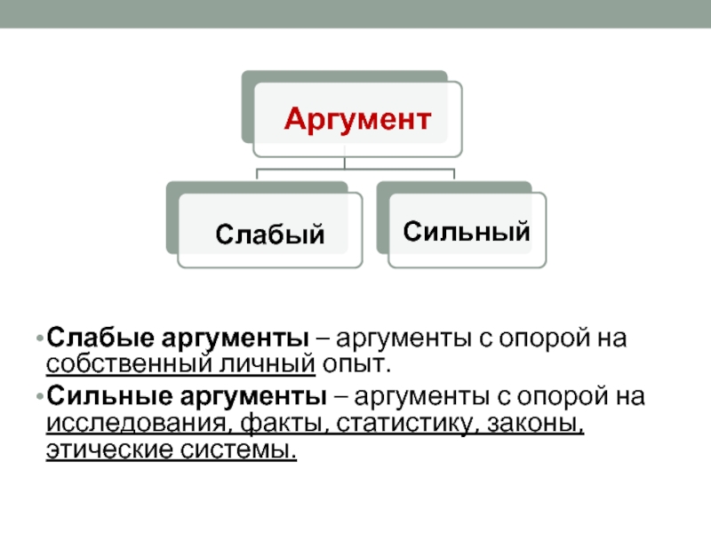Слабые аргументы – аргументы с опорой на собственный личный опыт.