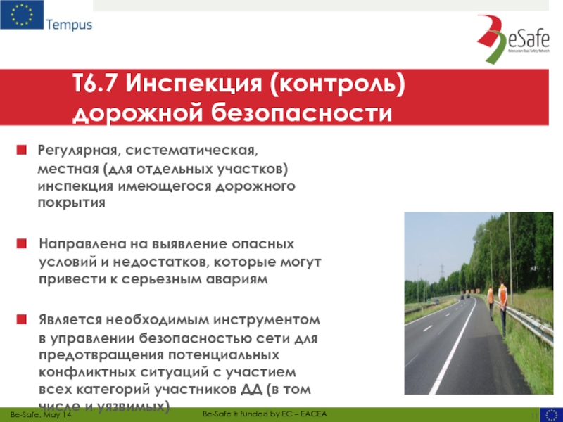 систематический и технический контроль безопасности, связанный с проектными характеристиками дорожной