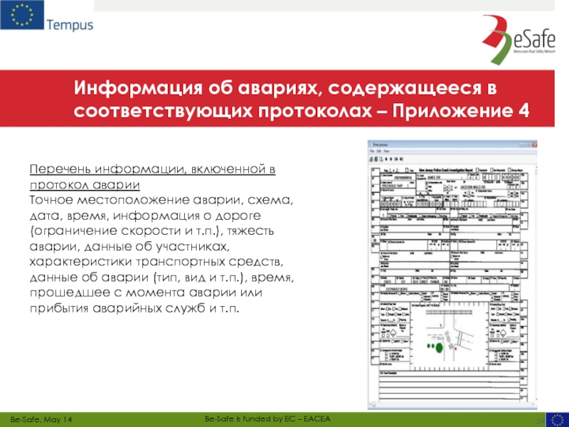 Слайд 34Информация об авариях, содержащееся в соответствующих протоколах – Приложение 4