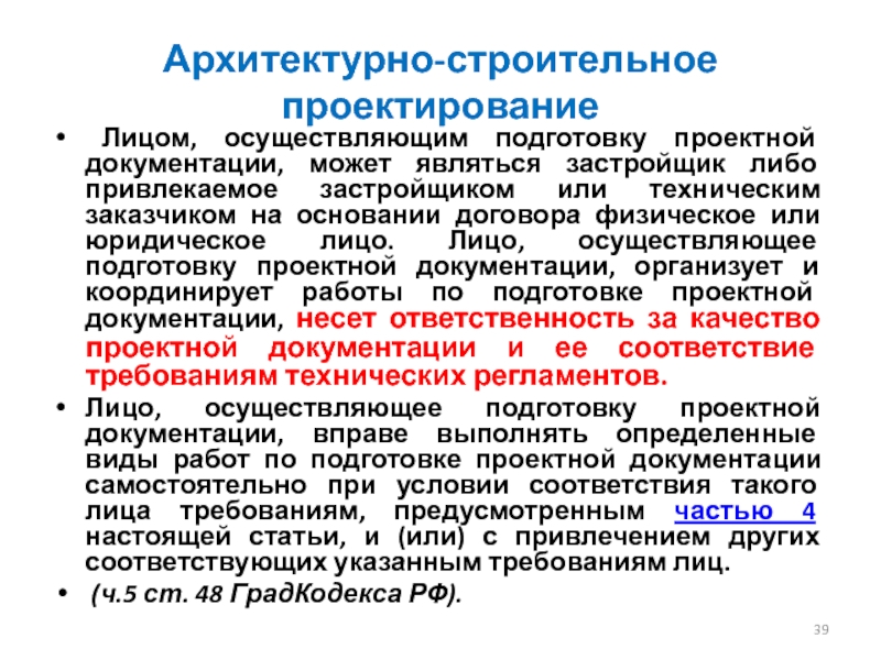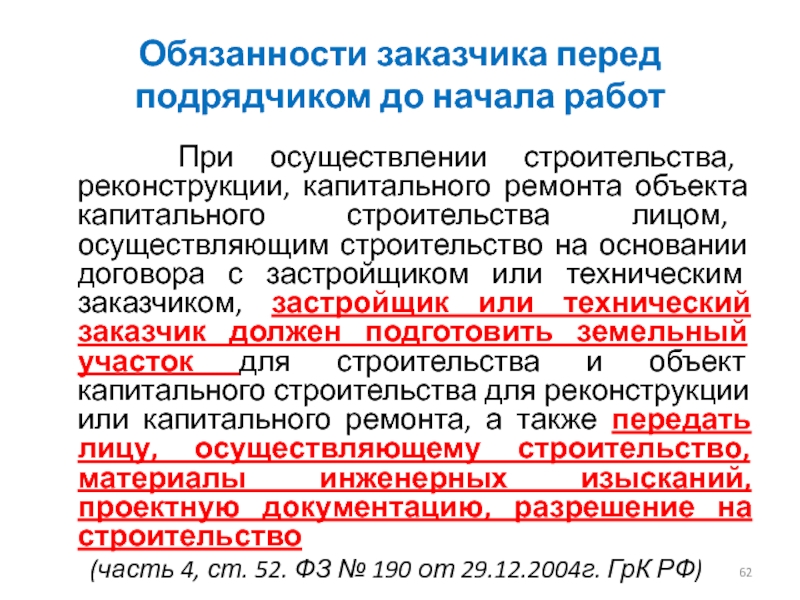 либо привлекаемом ими на основании договора физическим или юридическим лицом. Градостроительный кодекс Российской Федерации от 29 декабря 2004 г. N 190-ФЗ