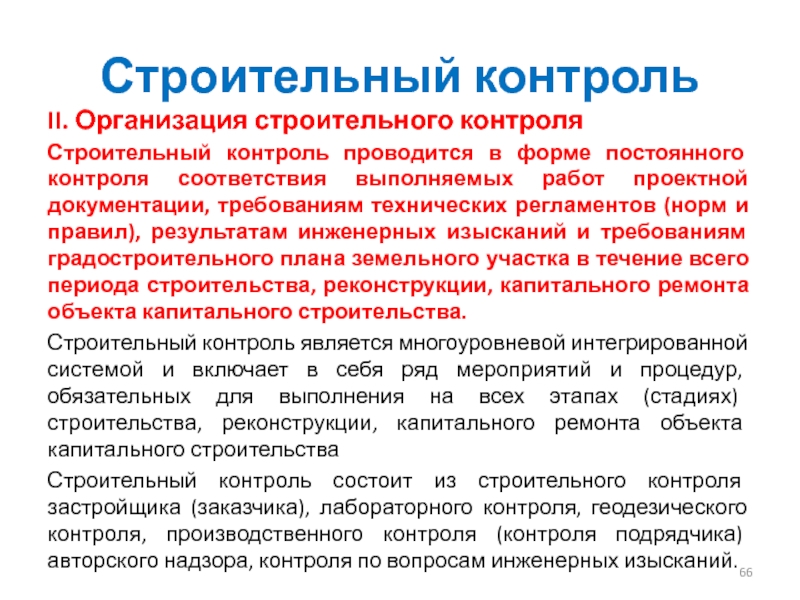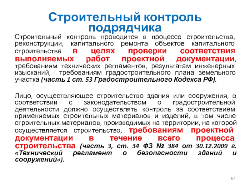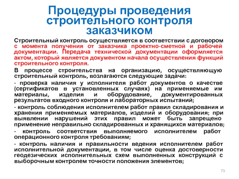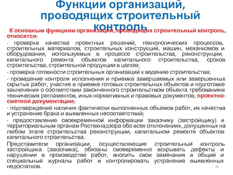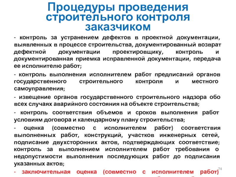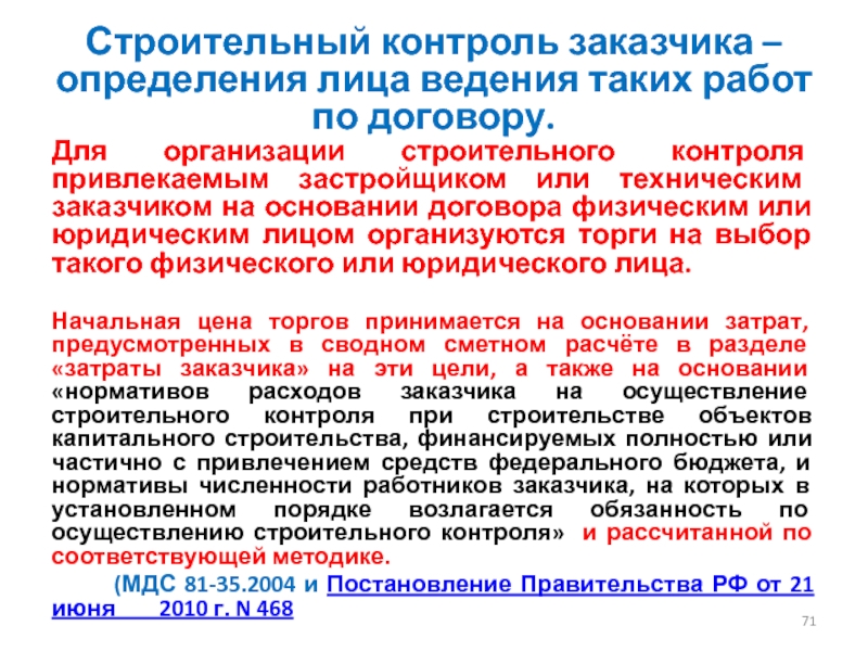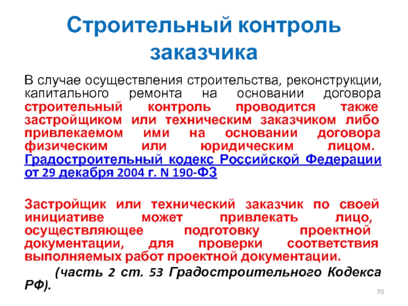 Слайд 71Строительный контроль заказчика – определения лица ведения таких работ по