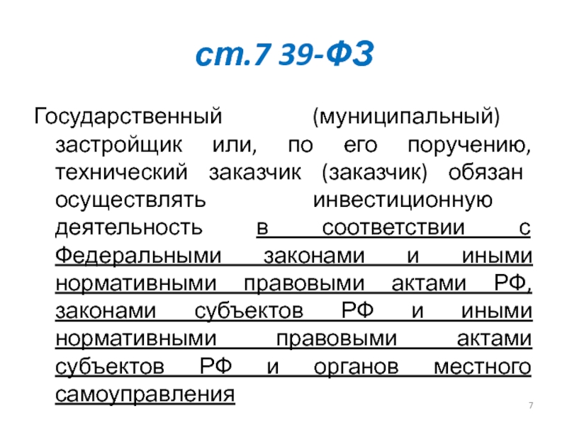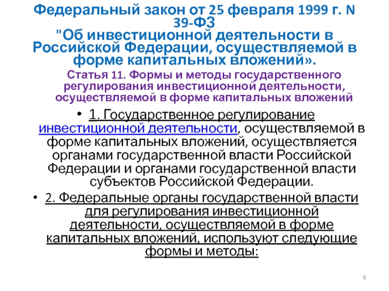 Слайд 9Федеральный закон от 25 февраля 1999 г. N 39-ФЗ
