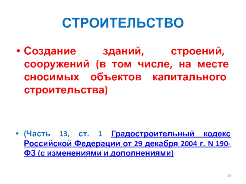 строительство здания или сооружения, в соответствии с законодательством о градостроительной