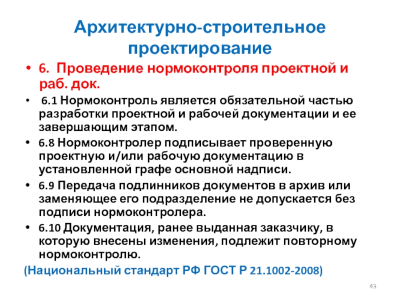 проектировщику, контроль и документированная приемка исправленной документации, передача ее исполнителю работ;
