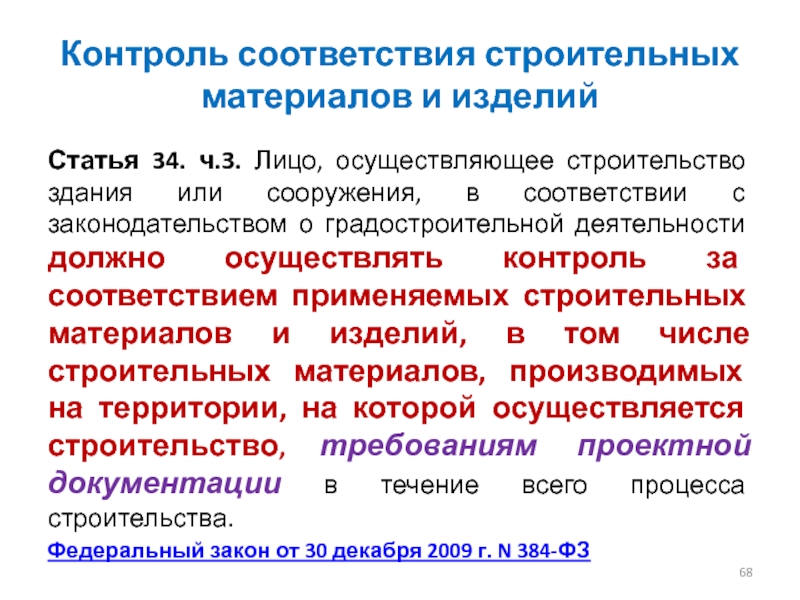 деятельности должно осуществлять контроль за соответствием применяемых строительных материалов и изделий, в том числе строительных материалов, производимых на территории, на которой осуществляется строительство, требованиям проектной документации в течение всего процесса строительства.