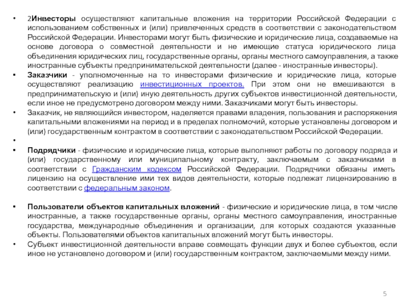 Слайд 52Инвесторы осуществляют капитальные вложения на территории Российской Федерации с использованием