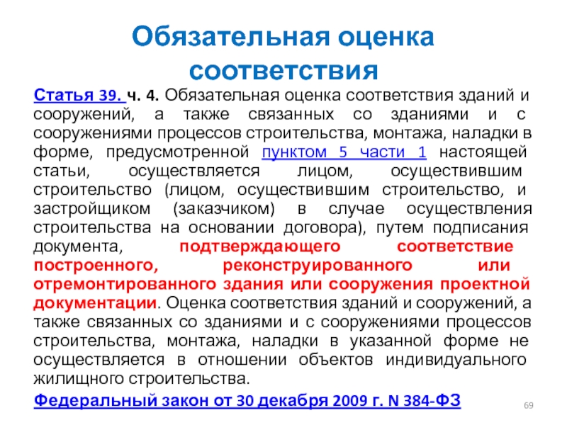 Статья 39. ч. 4. Обязательная оценка соответствия зданий