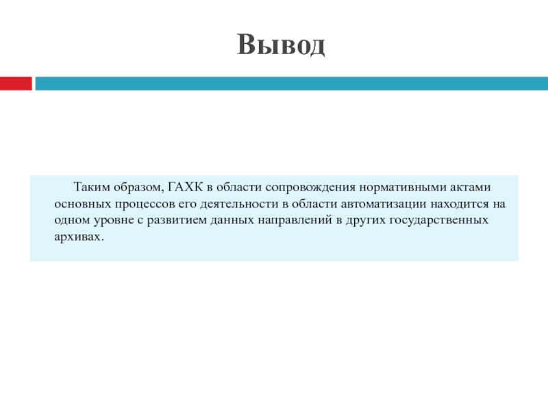 Таким образом, ГАХК в области сопровождения нормативными актами основных процессов