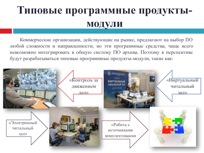 всего невозможно интегрировать в общую систему ПО архива. Поэтому в перспективе будут разрабатываться типовые программные продукты-модули, такие как: