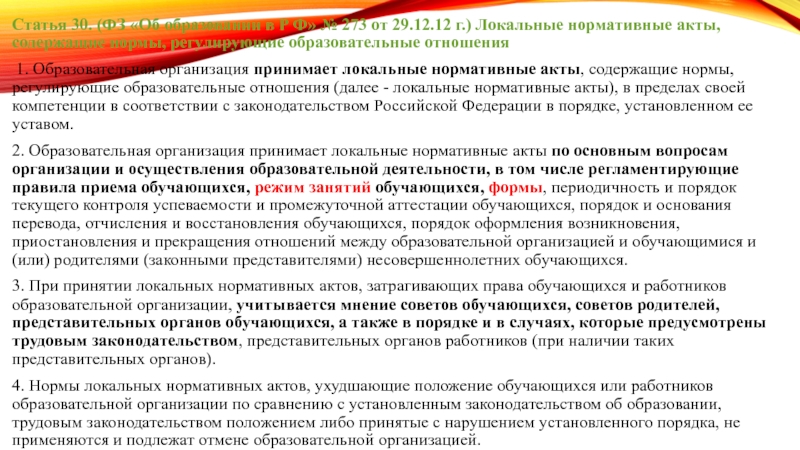 Слайд 46Статья 30. (ФЗ «Об образовании в Р Ф» № 273