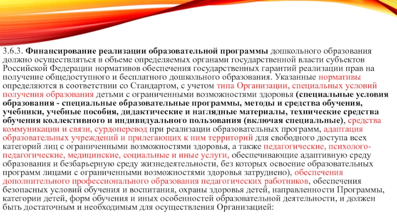 6. В целях обеспечения реализации права на образование обучающихся с ограниченными возможностями здоровья устанавливаются федеральные государственные образовательные стандарты образования указанных лиц или включаются в федеральные государственные образовательные стандарты специальные требования.