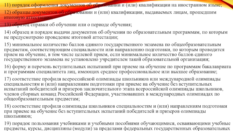 Слайд 4811) порядок оформления документов об образовании и (или) квалификации на