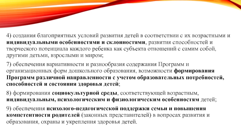 8) формирования социокультурной среды, соответствующей возрастным, индивидуальным, психологическим и физиологическим особенностям детей;
