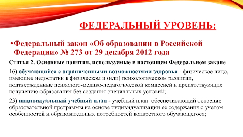 Федеральный закон «Об образовании в Российской Федерации» № 273