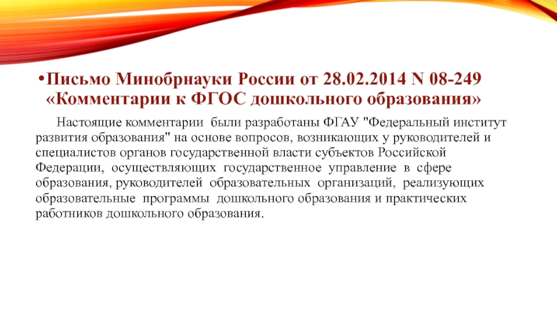Слайд 13Федеральный государственный образовательный стандарт дошкольного образования (Утвержден приказом Министерства образования