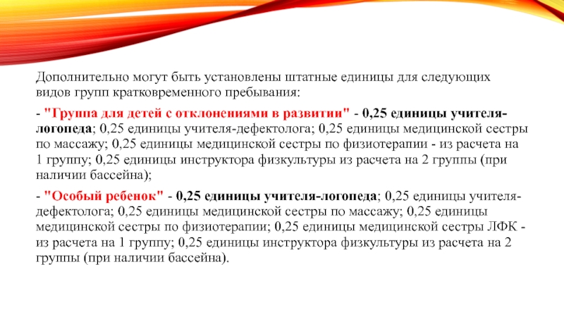 Слайд 39Дополнительно могут быть установлены штатные единицы для следующих видов групп