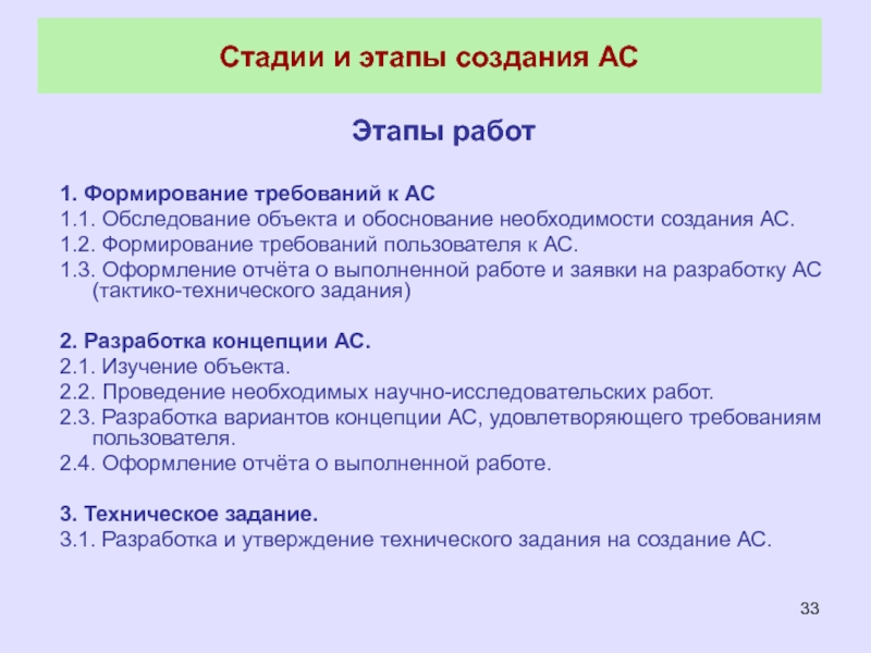 АВТОМАТИЗИРОВАННЫЕ СИСТЕМЫ. СТАДИИ