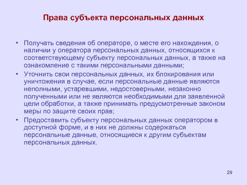 субъекту персональных данных, а также на ознакомление с такими персональными данными;