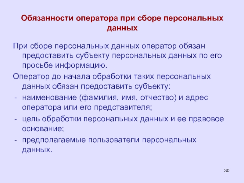 обязан предоставить субъекту персональных данных по его просьбе информацию.