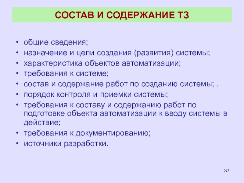 Слайд 37СОСТАВ И СОДЕРЖАНИЕ ТЗ