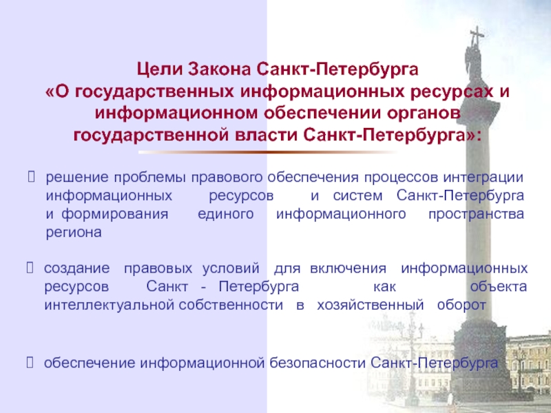 создание правовых условий для включения информационных ресурсов Санкт - Петербурга как объекта интеллектуальной собственности в хозяйственный оборот