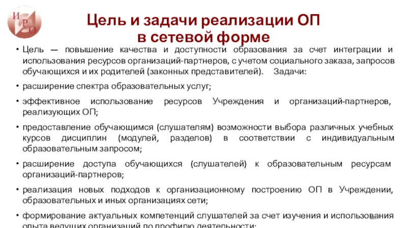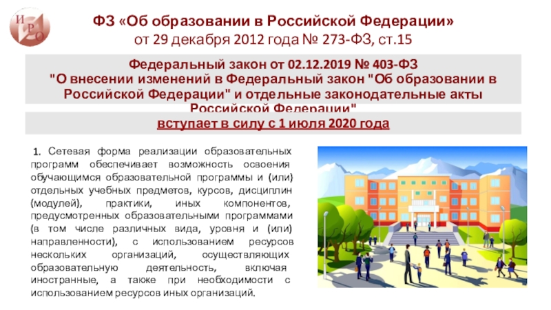Слайд 1 Нормативно-правовые аспекты реализация общеобразовательных программ в сетевой форме