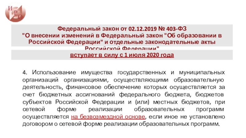 Слайд 214. Использование имущества государственных и муниципальных организаций организациями, осуществляющими образовательную