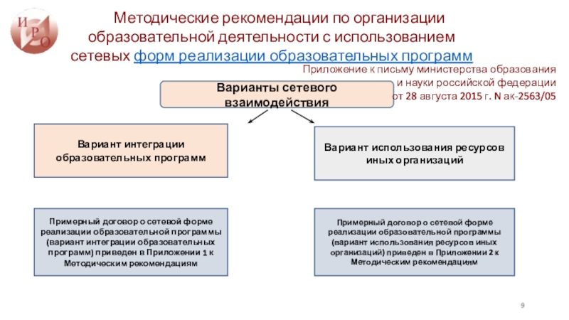 Слайд 9Методические рекомендации по организации образовательной деятельности с использованием сетевых форм