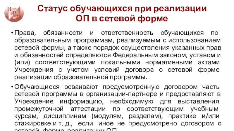 ответственность обучающихся по образовательным программам, реализуемым с использованием сетевой формы,
