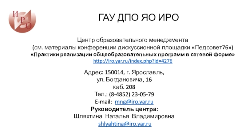 реализация новых подходов к организационному построению ОП в Учреждении, образовательных и иных организациях сети;