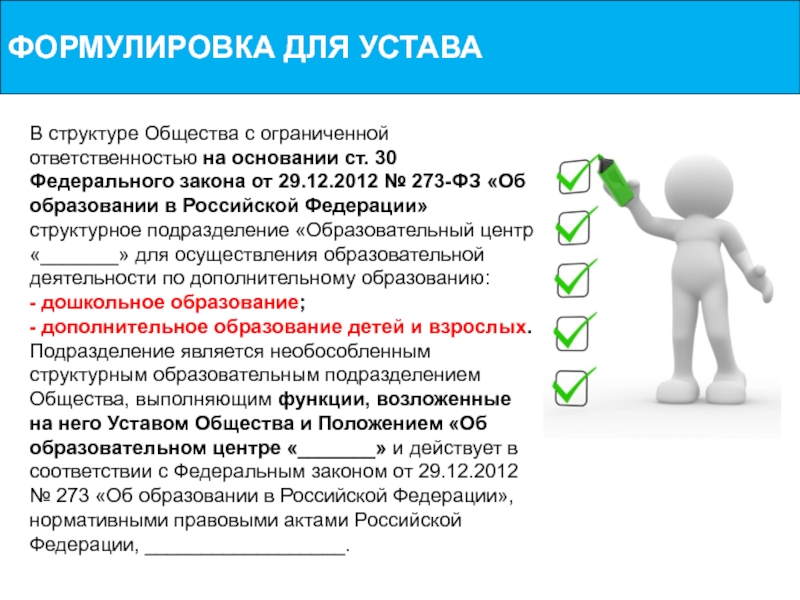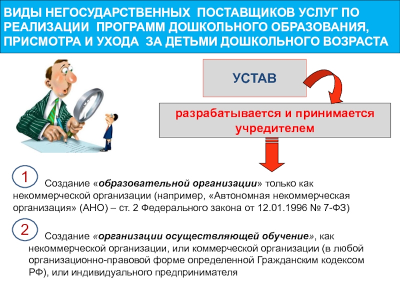 Создание «организации осуществляющей обучение», как некоммерческой организации, или коммерческой организации (в любой организационно-правовой форме определенной Гражданским кодексом РФ), или индивидуального предпринимателя