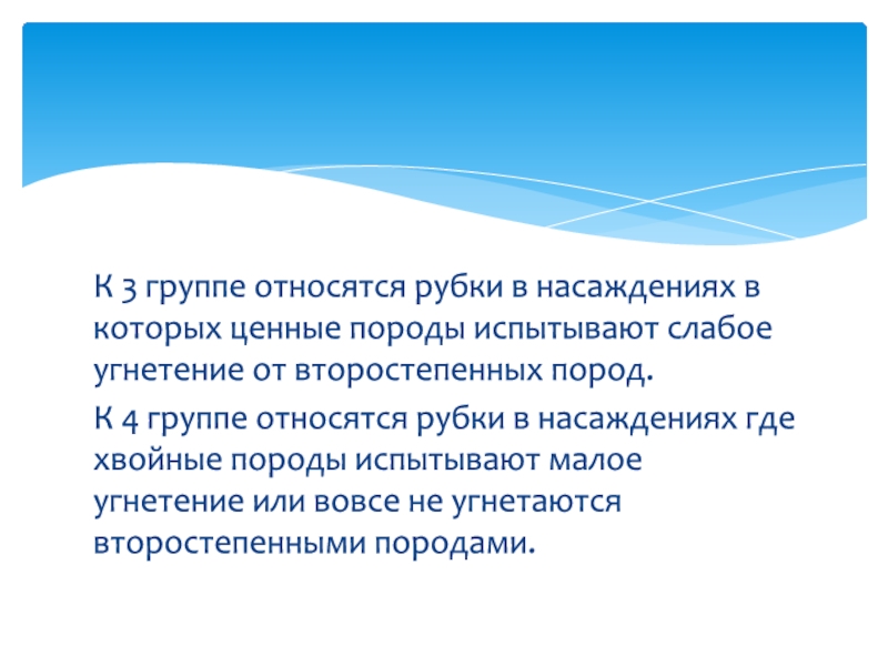 Слайд 5К 3 группе относятся рубки в насаждениях в которых ценные