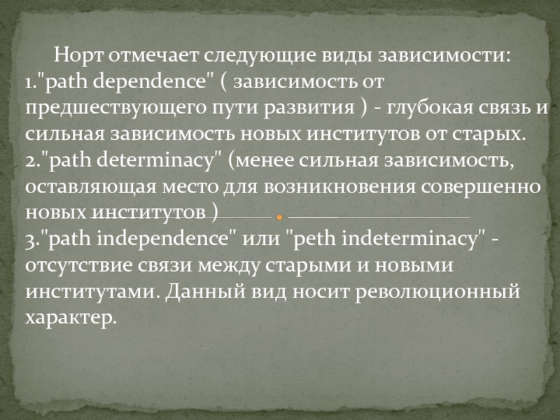 Слайд 20 Норт отмечает следующие виды зависимости: