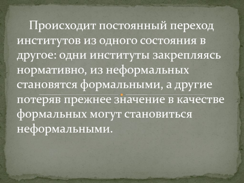 Слайд 10 Происходит постоянный переход институтов из одного состояния в другое: одни