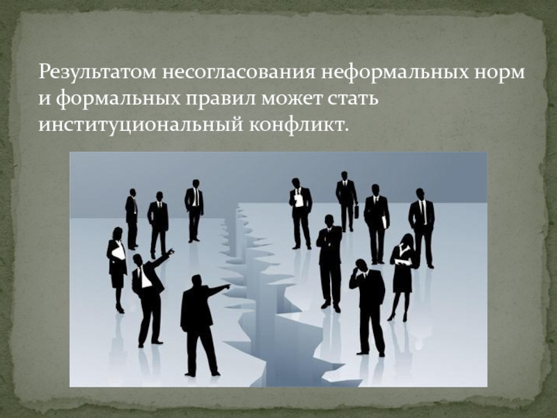 Слайд 22Результатом несогласования неформальных норм и формальных правил может стать институциональный