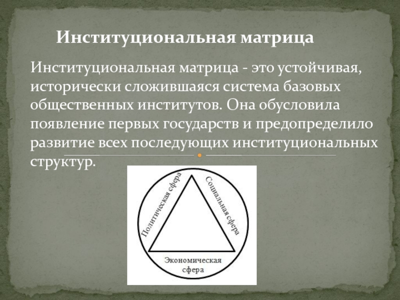 Институциональная матрица - это устойчивая, исторически сложившаяся система базовых