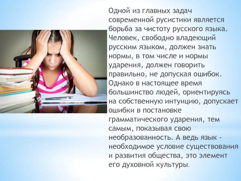 Слайд 4Одной из главных задач современной русистики является борьба за чистоту