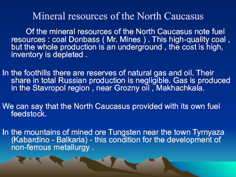 In the mountains of mined ore Tungsten near the town Tyrnyaza (Kabardino - Balkaria) - this condition for the development of non-ferrous metallurgy .
