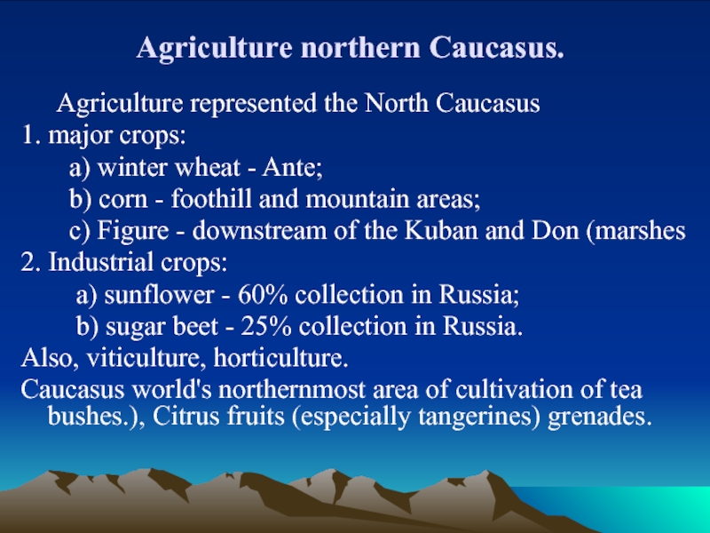 Caucasus world's northernmost area of cultivation of tea bushes.), Citrus fruits (especially tangerines) grenades.