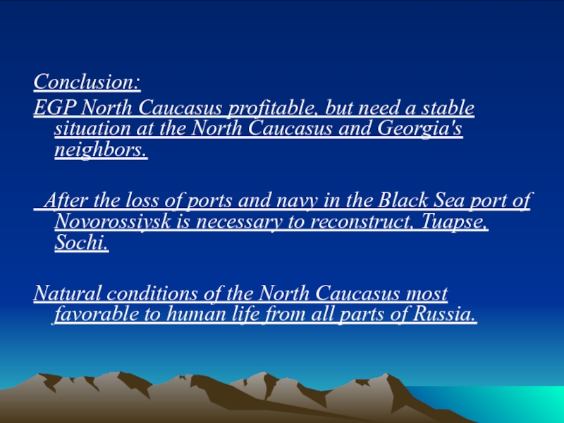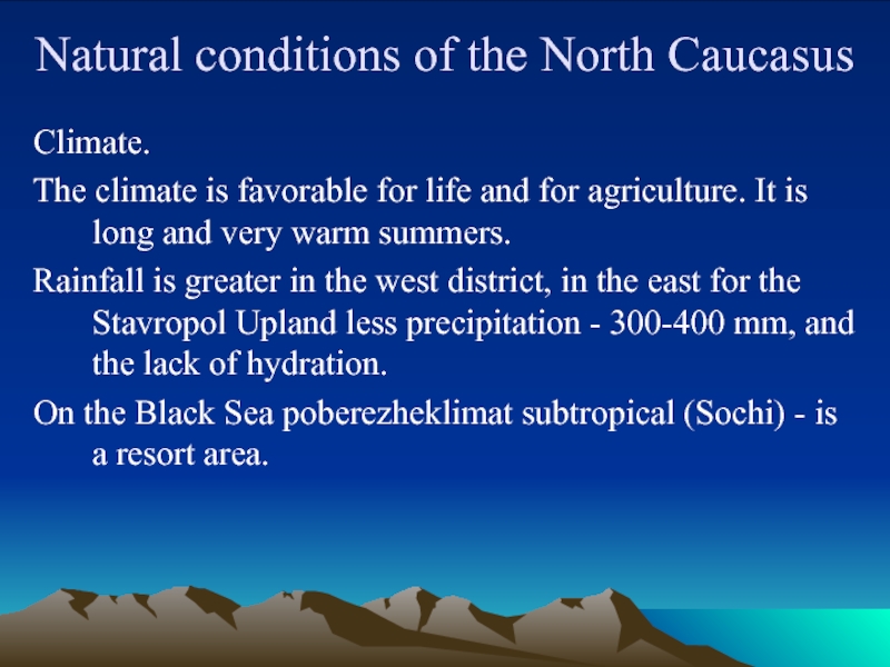 Natural conditions of the North Caucasus most favorable to human life from all parts of Russia.
