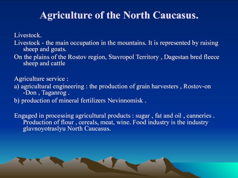 the plains of the Rostov region, Stavropol Territory , Dagestan bred fleece sheep and cattle