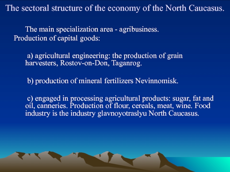 Слайд 16The sectoral structure of the economy of the North Caucasus.