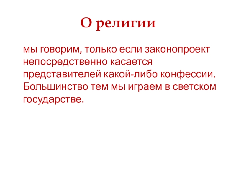 О религиимы говорим, только если законопроект непосредственно касается представителей какой-либо конфессии. Большинство тем мы играем в светском