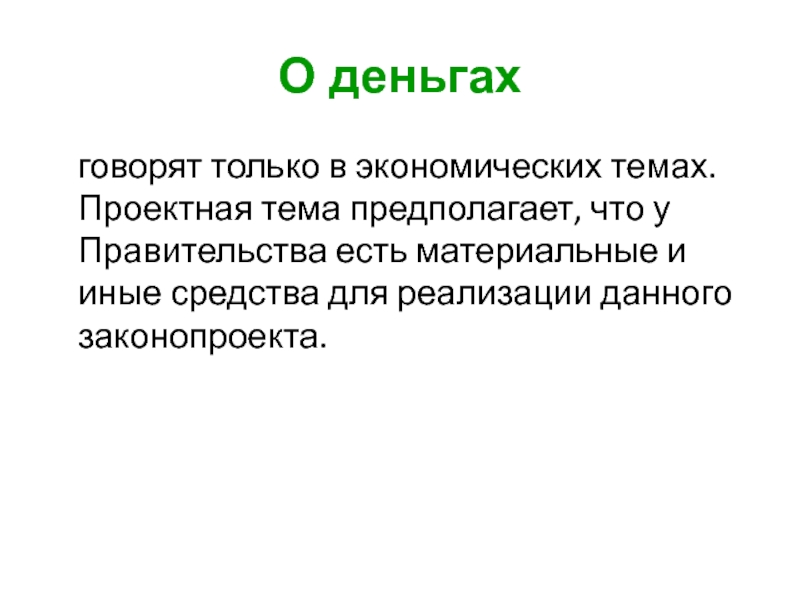 О деньгахговорят только в экономических темах. Проектная тема предполагает, что у Правительства есть материальные и иные средства