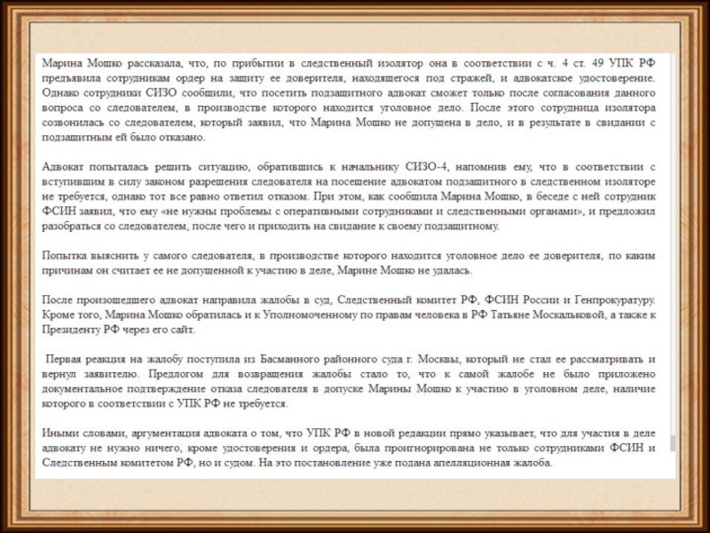 Слайд 1Новации в гарантиях прав защитника в уголовном судопроизводстве и случаи