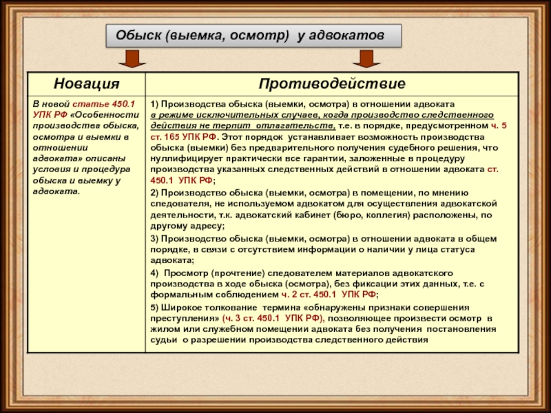Слайд 8 Обыск (выемка, осмотр) у адвокатов