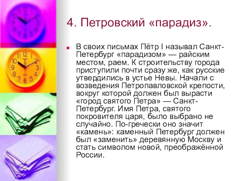 «парадизом» — райским местом, раем. К строительству города приступили почти