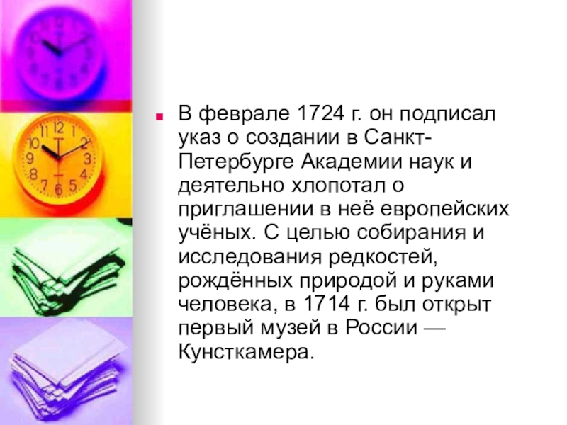 Слайд 11В феврале 1724 г. он подписал указ о создании в Санкт-Петербурге